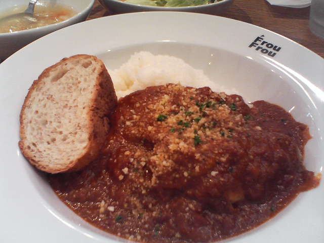 自由が丘、緑道裏にあるFrou Frou(フルフル)というレストランでランチ。自由が丘に勤め始めてもうすぐ一年になるけど、まだまだ知らないお店がいっぱいあります。ココナッツ風味のカレーは煮込まれてやわらかくなったチキンが大きいまま入っていました。