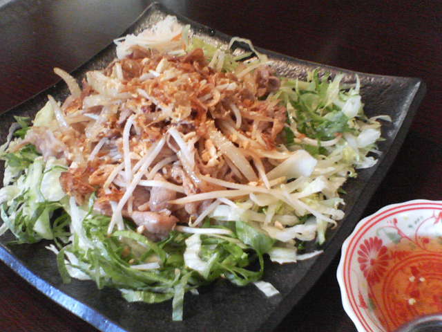 最近、なぞの自由が丘デパートのレストランを攻めつつありますが、今回は前から気になっていたベトナム料理のお店に。本格的なベトナム料理のメニューがたくさんある中で私が選んだのはブン・ディッ・サオという麺料理。素麺みたいな麺に豚肉と生野菜がたくさんもられて出てきました。スイートチリソースのさらさらしたやつ(名前が分かりません・・・。酢もちょっと入ったような。)をかけていただくちょっとさっぱり味。ボリュームも満点!おいしかった~♪夜にも来てみたいな。